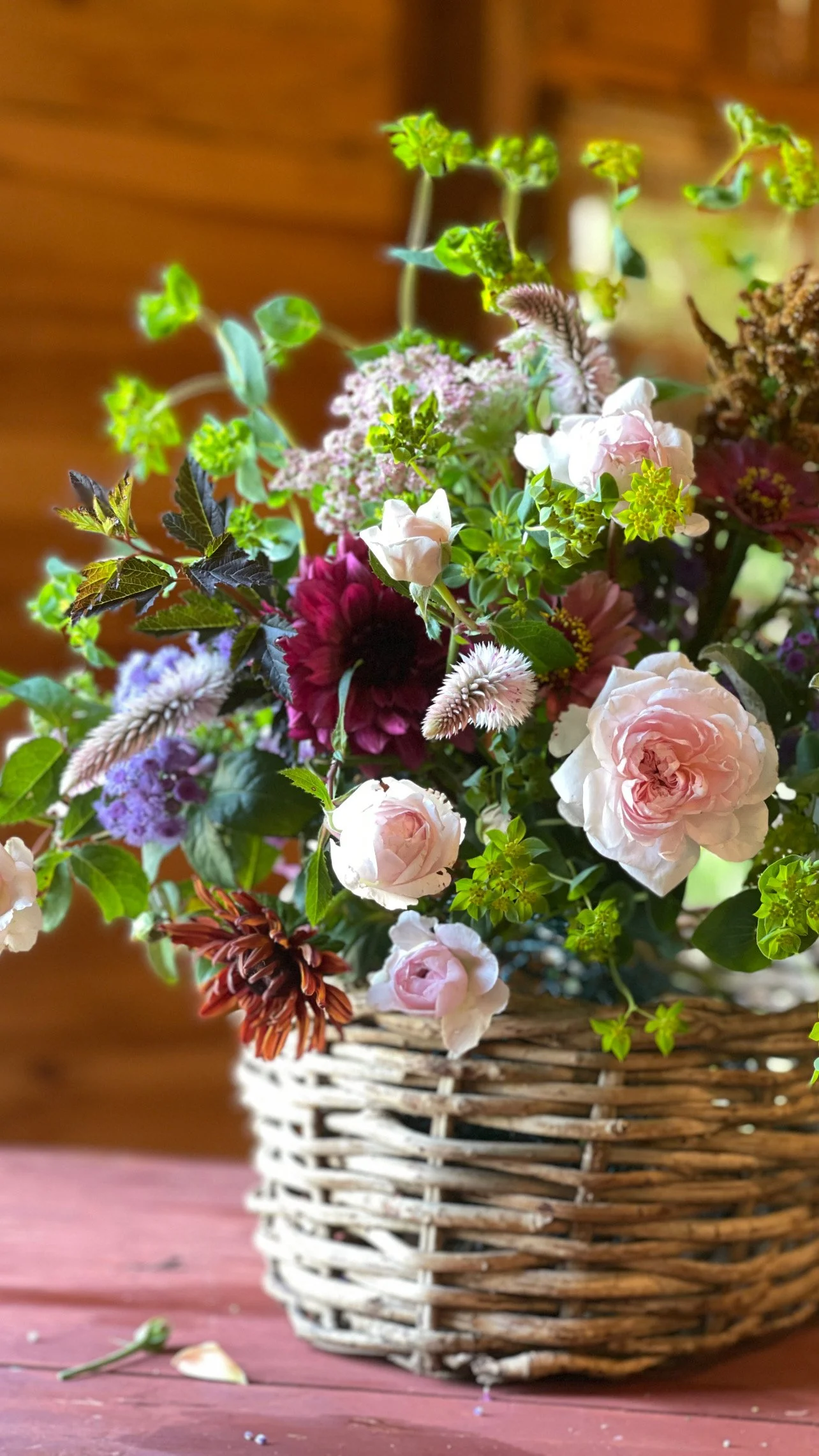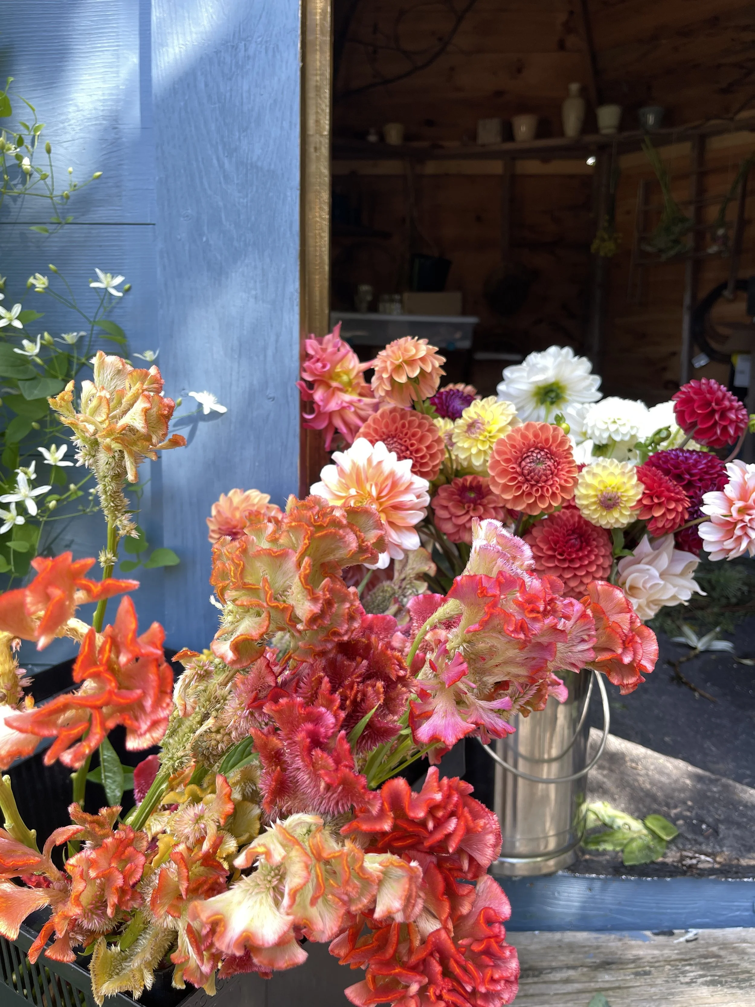 We handcraft bouquets, seasonal arrangements, and unique event florals using flowers grown by us on our local farm.